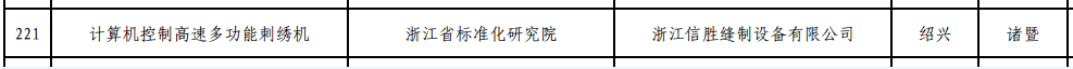 近日,信胜申请的《计算机控制调整多功能刺绣机》标准被纳入2018年第三批浙江制造标准制定计划!