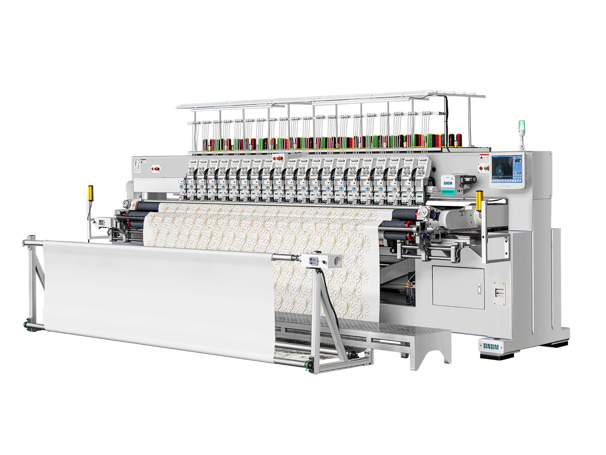 - Optional devices: Automatic fabric rolling/batting feeding, sequin device, easy-cording device, bead device, automatic bobbin changer, laser cutting device.